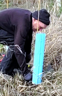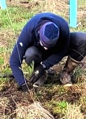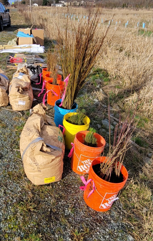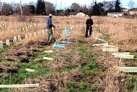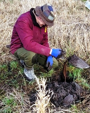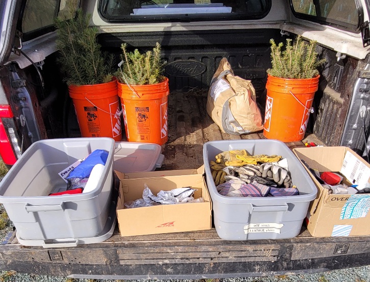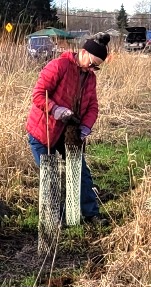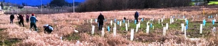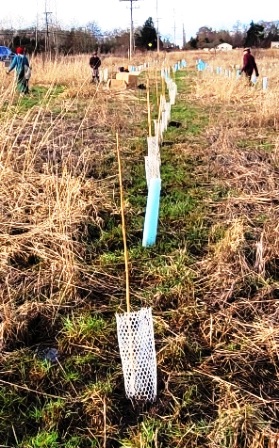 About 12 hearty volunteers and staff from the Land Trust came out on what was to be a rainy morning to plant more trees and shrubs.
