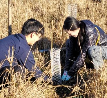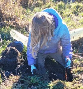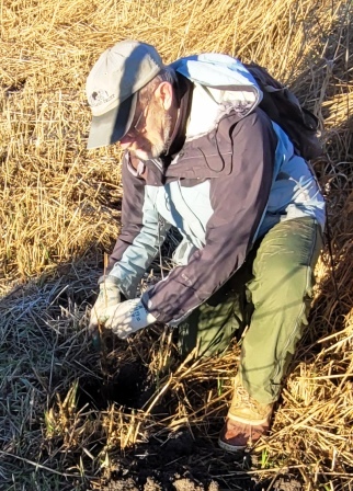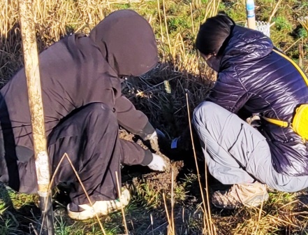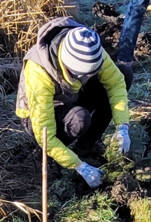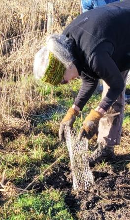 About 20 hearty volunteers and staff from the Land Trust came out on a pretty, frosty morning to plant some trees.